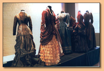 A group of Victorian bustle dresses